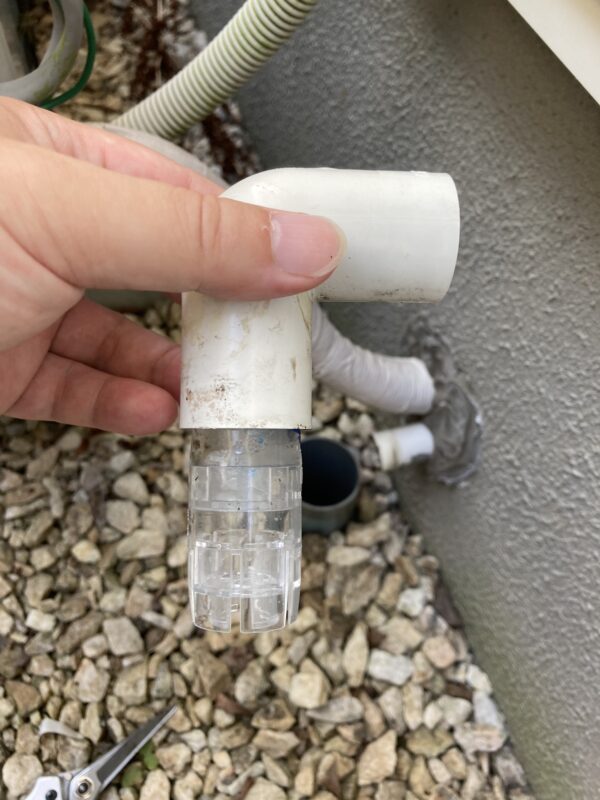 そして、こちらが屋外のドレイン配管出口部分の写真になります。